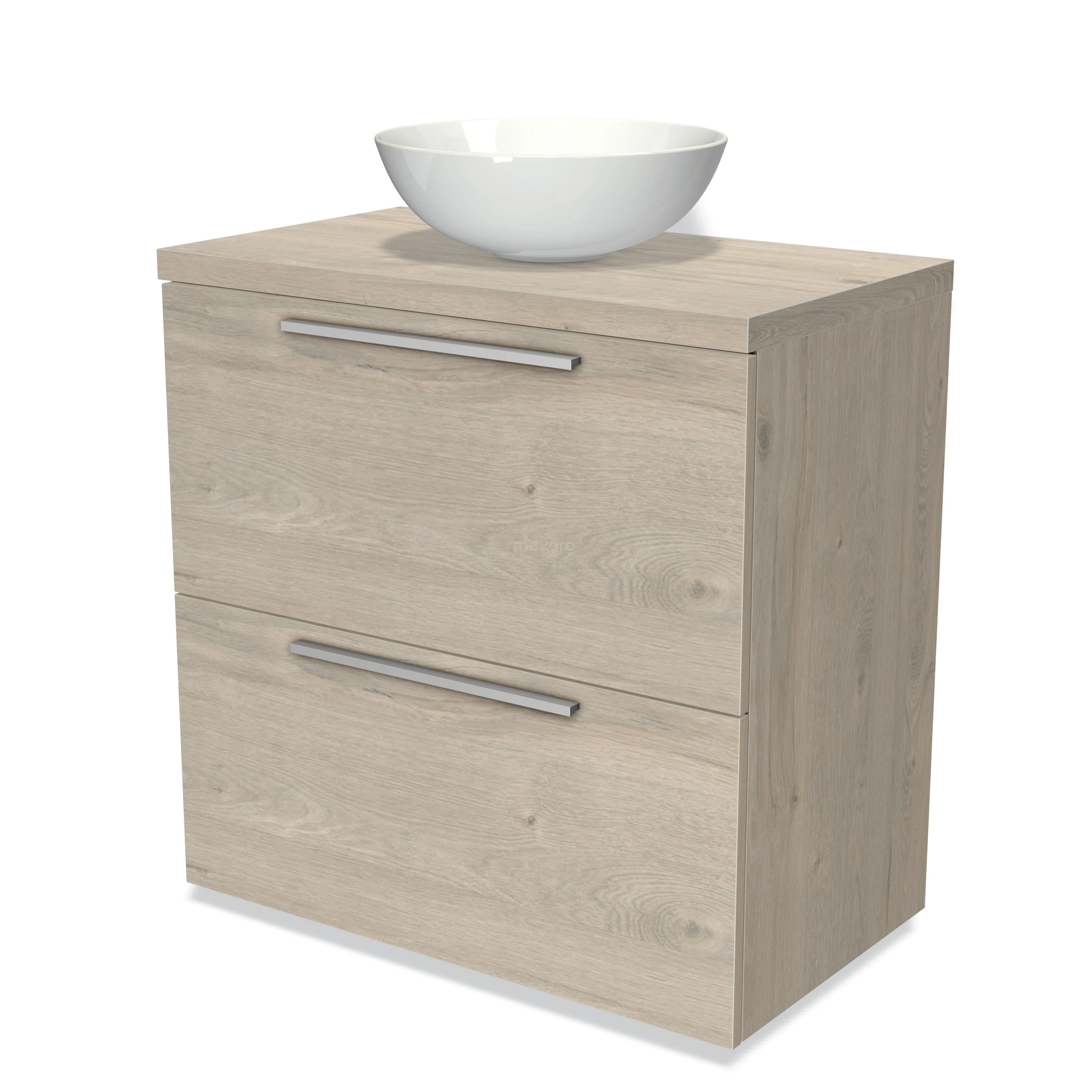Badmöbel für Aufsatzwaschbecken 80cm Modulo Plato Hellgraue Eiche 2 hohe Schubladen Flach