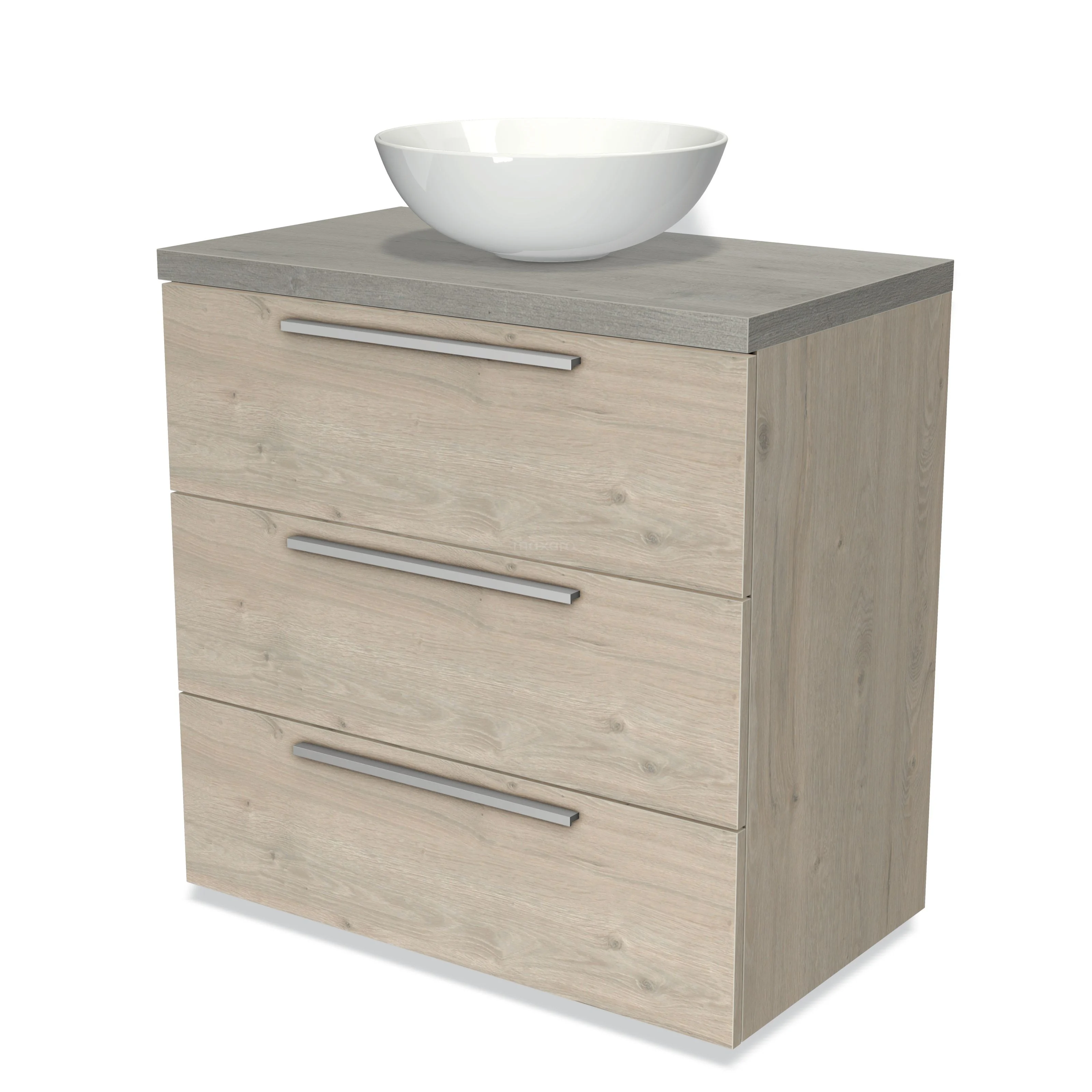 Badmöbel für Aufsatzwaschbecken 80cm Modulo Plato Hellgraue Eiche 3 Schubladen Flache graue Eiche Platte