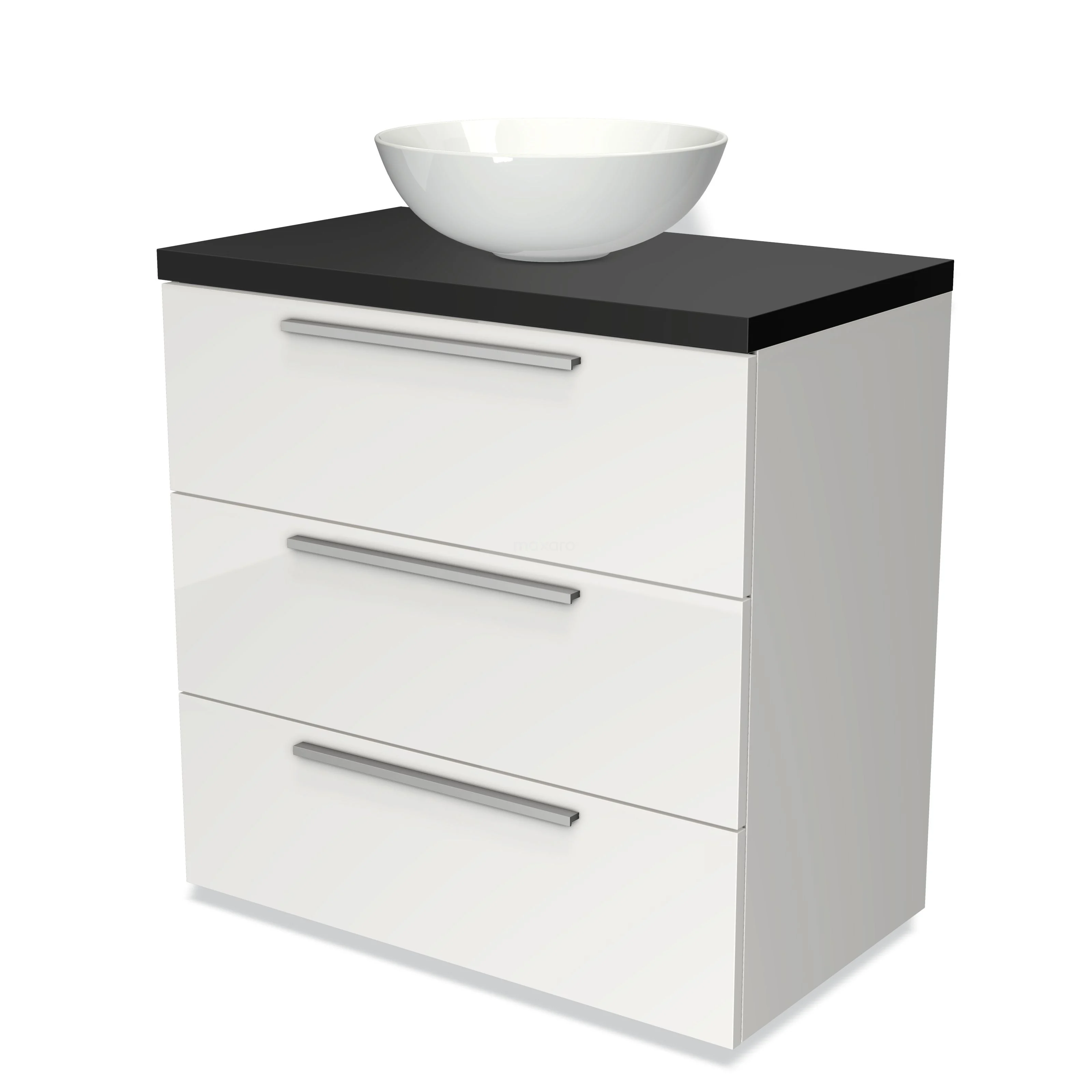 Badmöbel für Aufsatzwaschbecken 80cm Modulo Plato Hochglanz Weiß 3 Schubladen Flach Matt Schwarz Platte