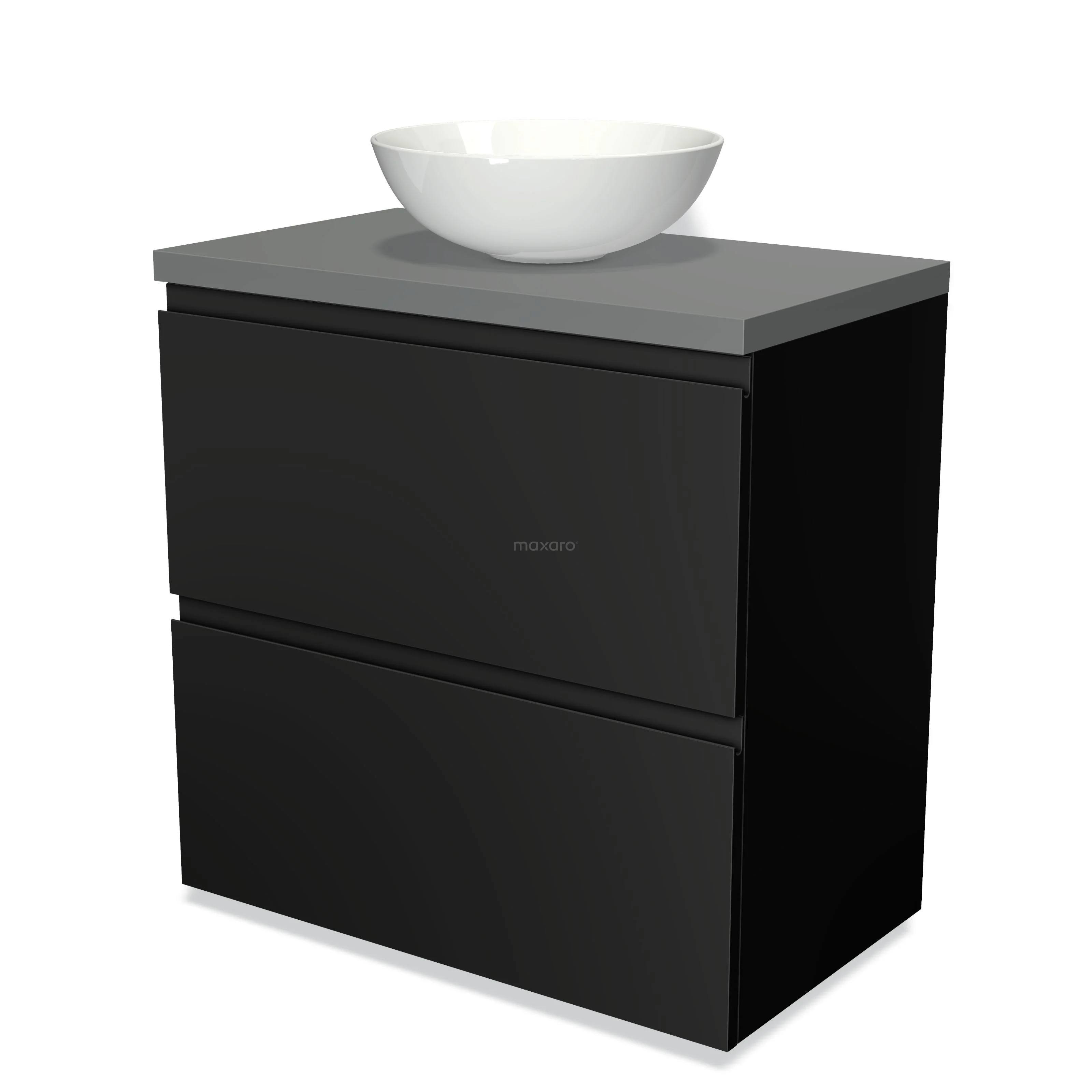 Badmöbel für Aufsatzwaschbecken 80cm Modulo Plato Matt Schwarz 2 hohe Schubladen Grifflos Mittelgrau Platte