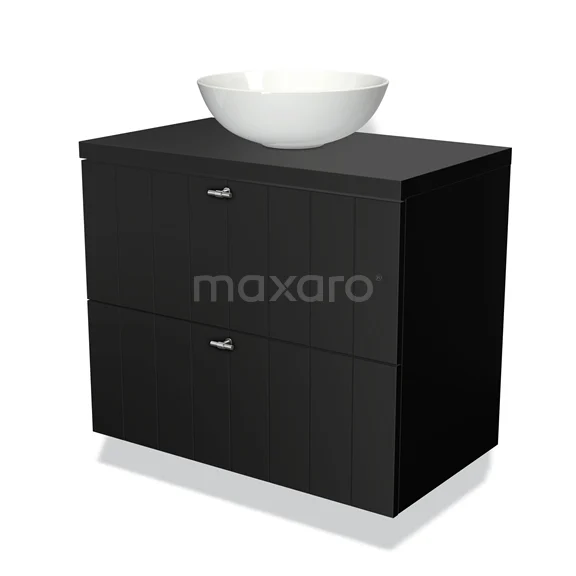 Badmöbel für Aufsatzwaschbecken 80cm Modulo Plato Matt Schwarz 2 Schubladen Laminat