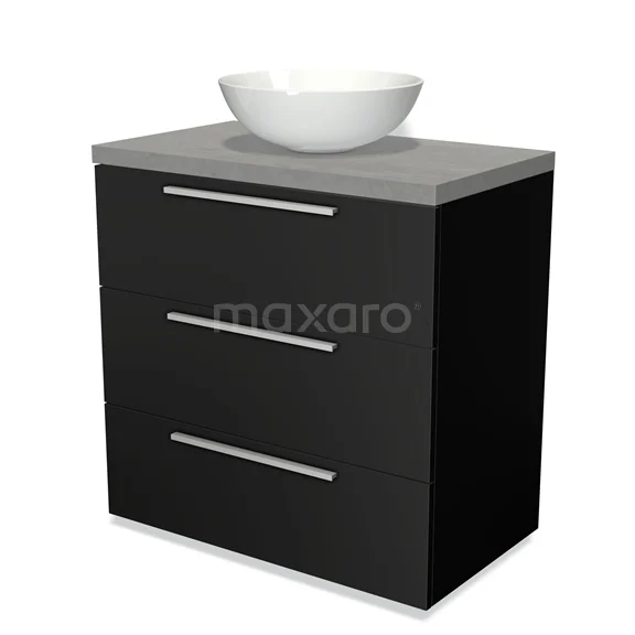 Badmöbel für Aufsatzwaschbecken 80cm Modulo Plato Matt Schwarz 3 Schubladen Flach Hellgrauer Beton Platte