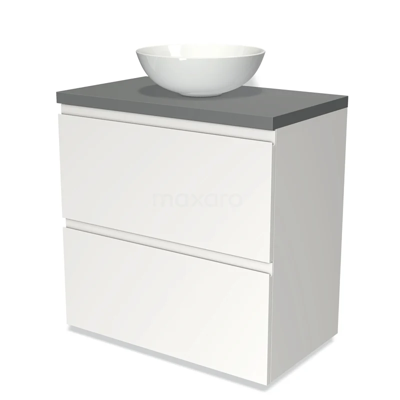 Badmöbel für Aufsatzwaschbecken 80cm Modulo Plato Matt Weiß 2 hohe Schubladen Grifflos Mittelgrau Platte