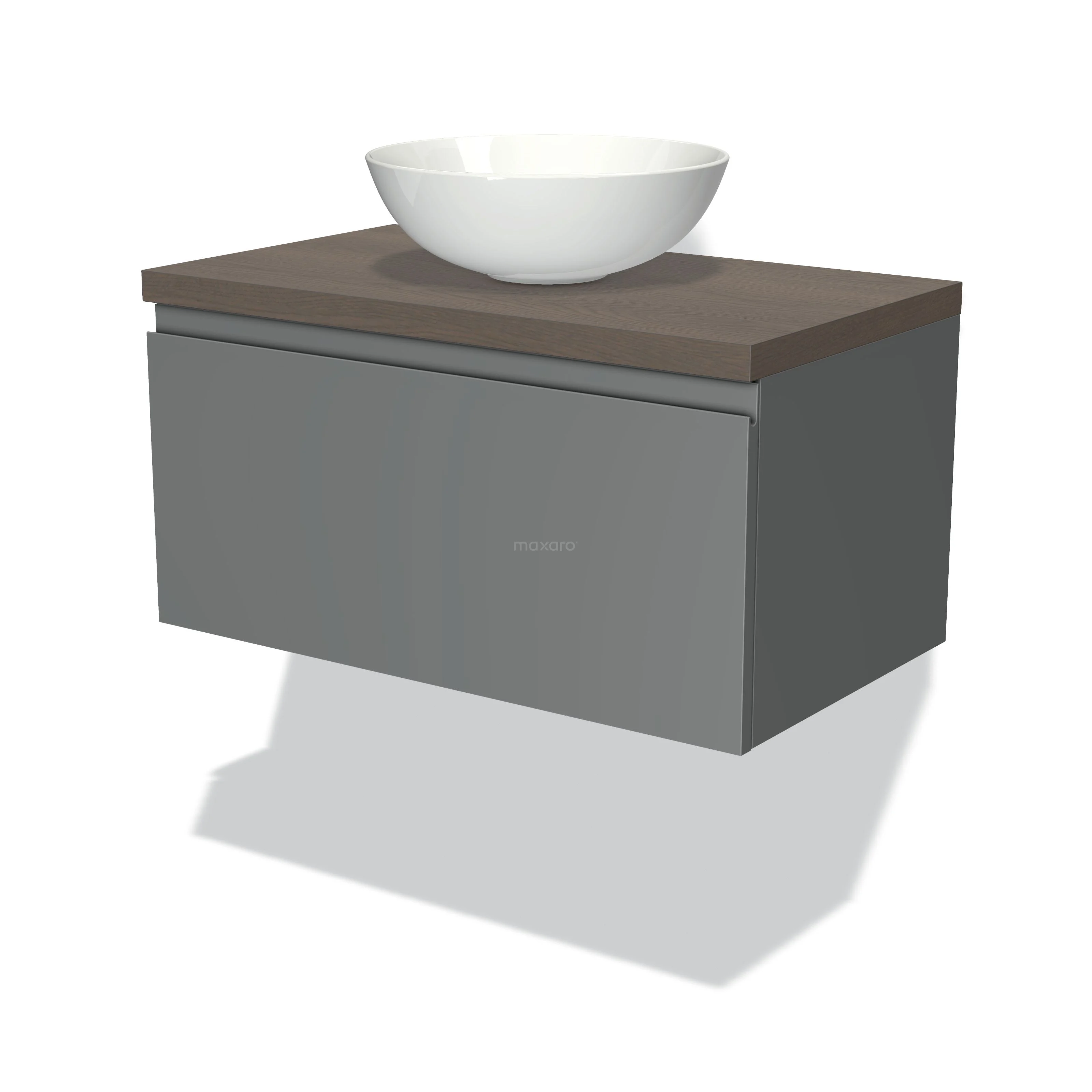 Badmöbel für Aufsatzwaschbecken 80cm Modulo Plato Mittelgrau 1 Schublade grifflos dunkelbraune Eiche Platte