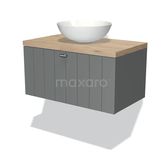 Badmöbel für Aufsatzwaschbecken 80cm Modulo Plato Mittelgrau 1 Schublade Lamelle Hellbraune Eiche Platte