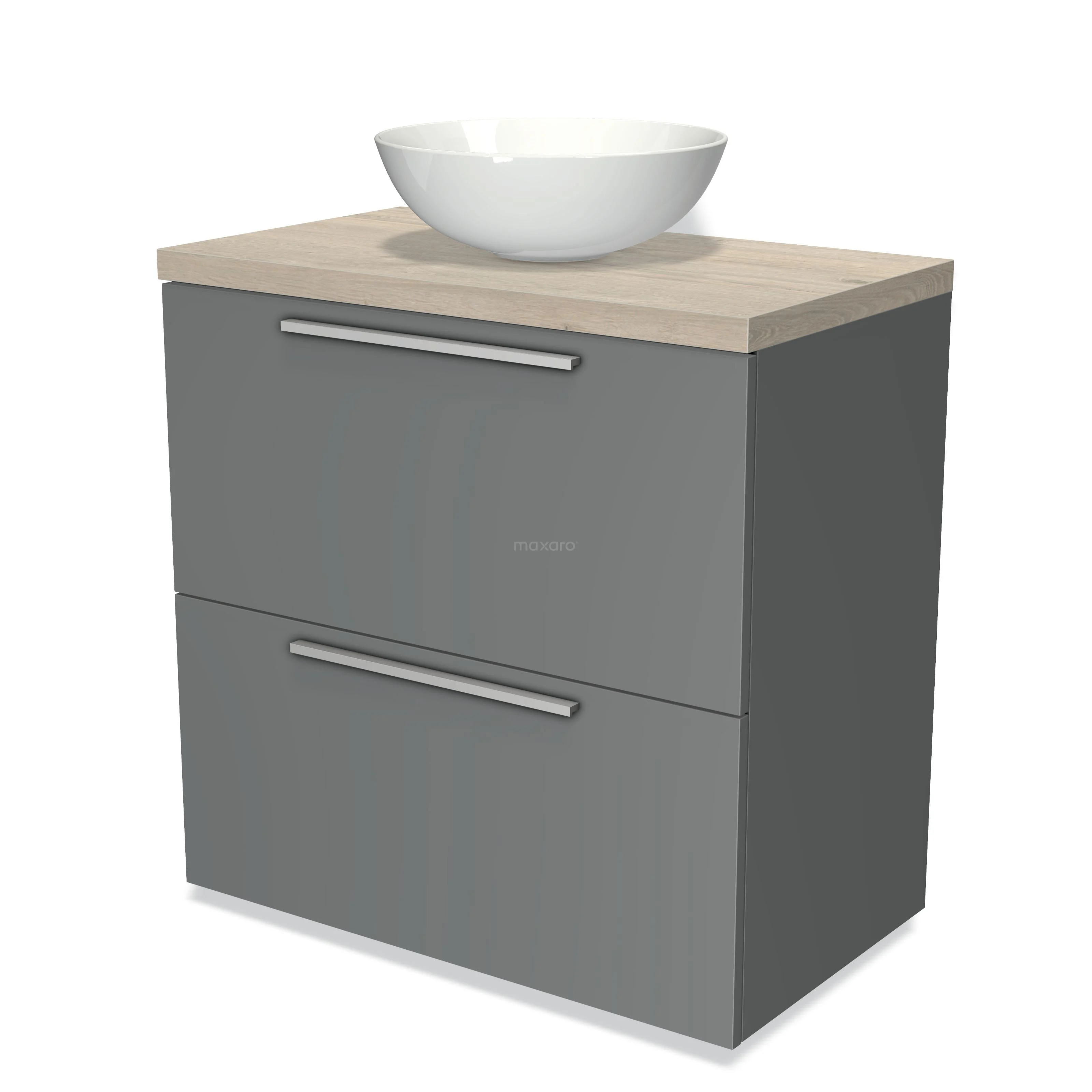 Badmöbel für Aufsatzwaschbecken 80cm Modulo Plato Mittelgrau 2 hohe Schubladen Flach hellgraue Eiche Platte