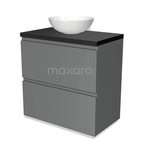 Badmöbel für Aufsatzwaschbecken 80cm Modulo Plato Mittelgrau 2 hohe Schubladen Grifflos Matt Schwarz Platte