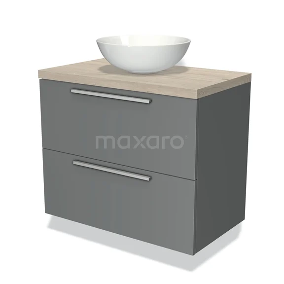 Badmöbel für Aufsatzwaschbecken 80cm Modulo Plato Mittelgrau 2 Schubladen Flach hellgraue Eiche Platte