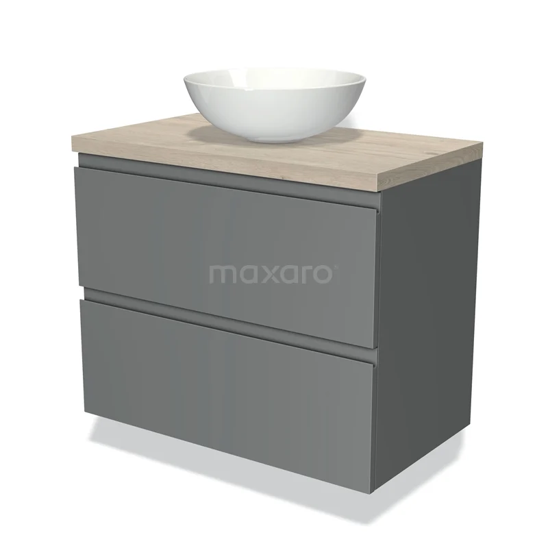 Badmöbel für Aufsatzwaschbecken 80cm Modulo Plato Mittelgrau 2 Schubladen Grifflos Hellgraue Eiche Platte