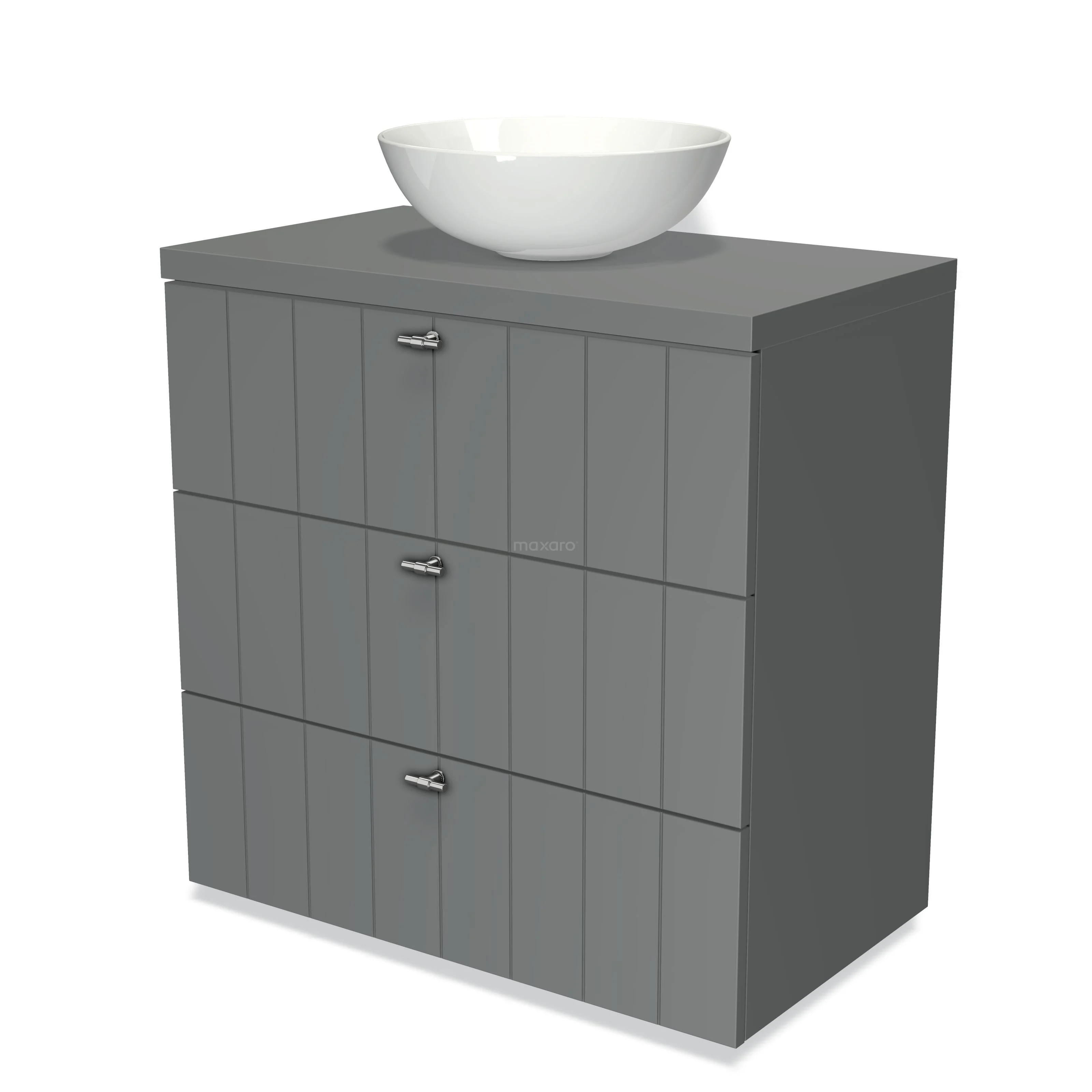 Badmöbel für Aufsatzwaschbecken 80cm Modulo Plato Mittelgrau 3 Schubladen Laminat