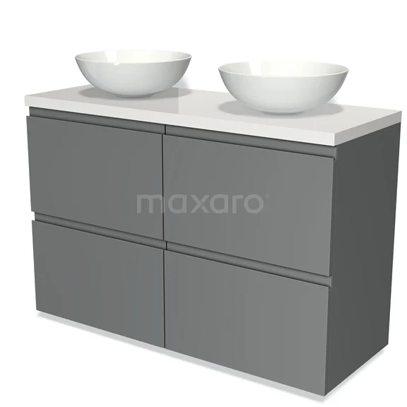 Badmöbel für Waschtischunterschrank 120cm Modulo Plato Mittelgrau 4 hohe Schubladen Grifflos Hochglanz Weiß Platte