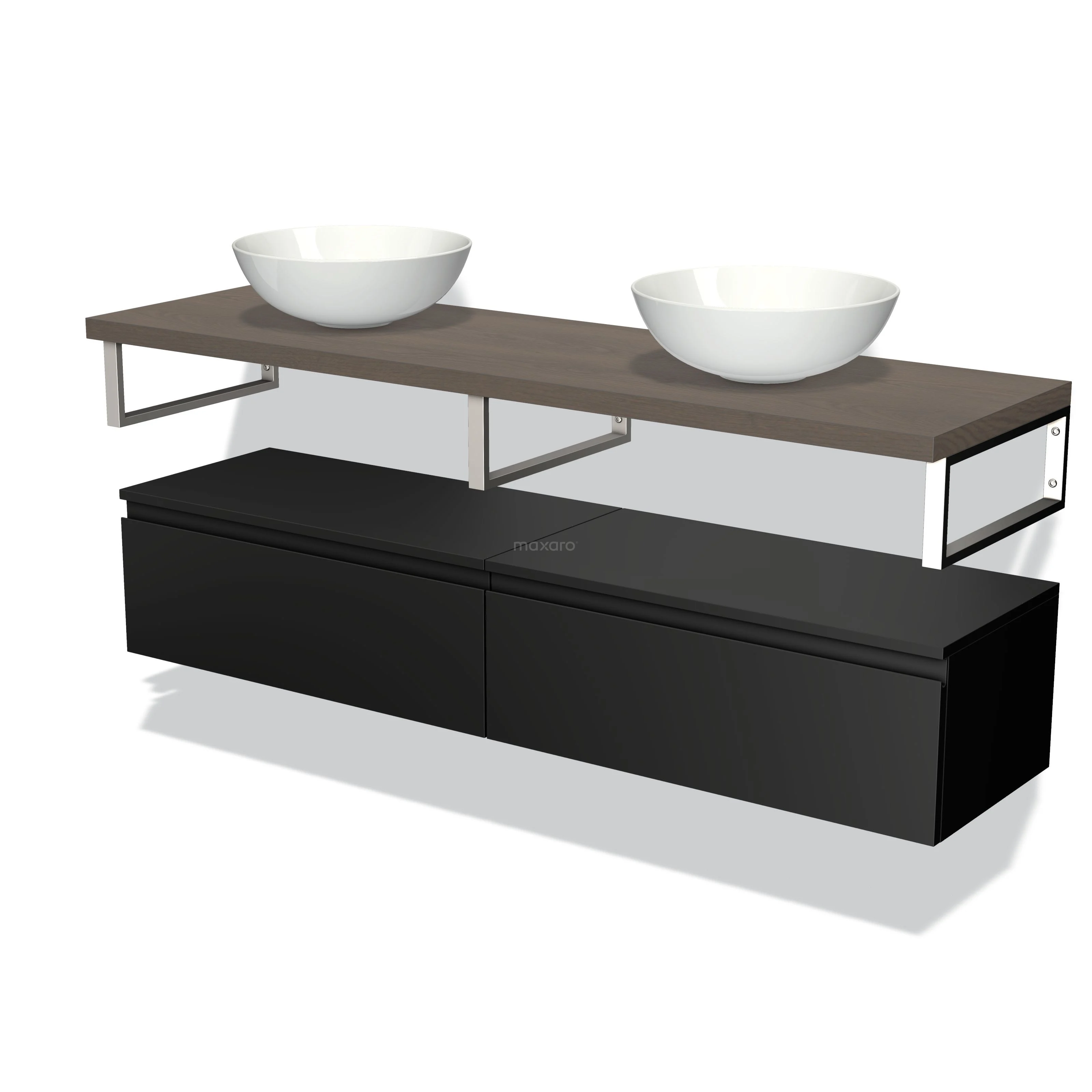 Badmöbel für Waschtischunterschrank 160 cm Modulo Plato Matt Schwarz 2 Schubladen Grifflos dunkelbraune Eiche Platte