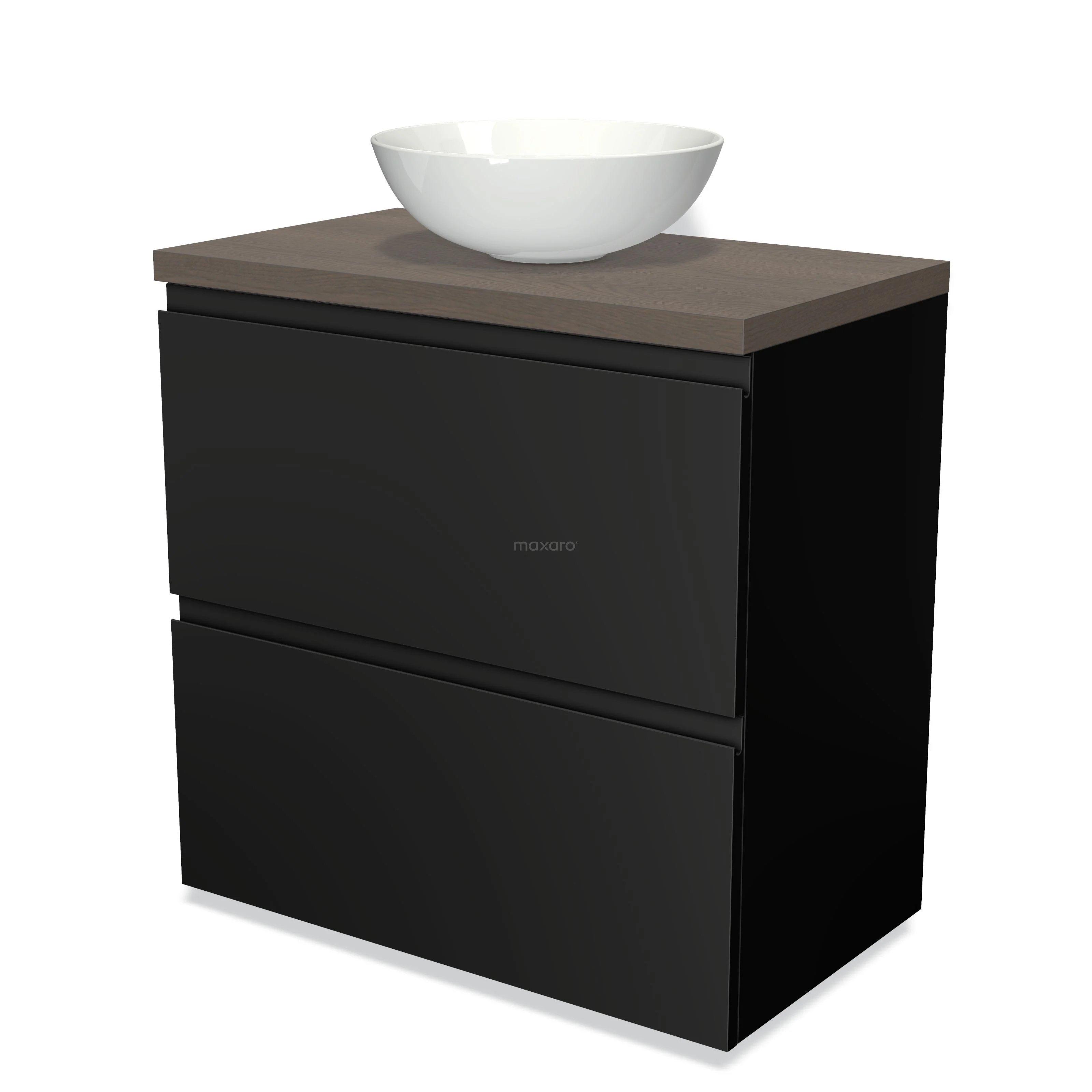 Badmöbel für Waschtischunterschrank 80cm Modulo Plato Matt Schwarz 2 hohe Schubladen Grifflos dunkelbraune Eiche Platte