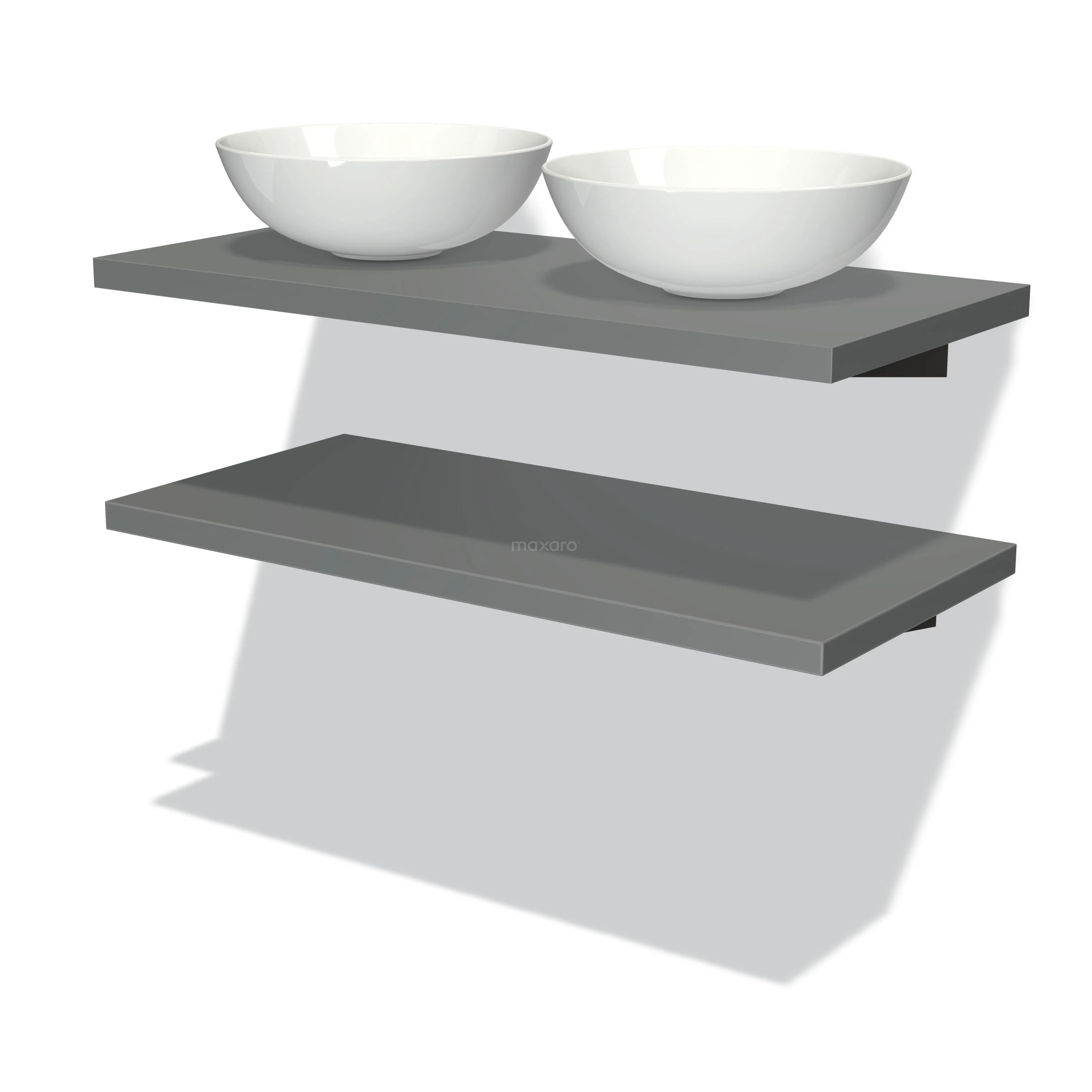 Badmöbel für Waschtischunterschrank mit Konsole 100 cm Modulo Plato Mittelgrau 2 Aufsatzwaschbeckenplatten