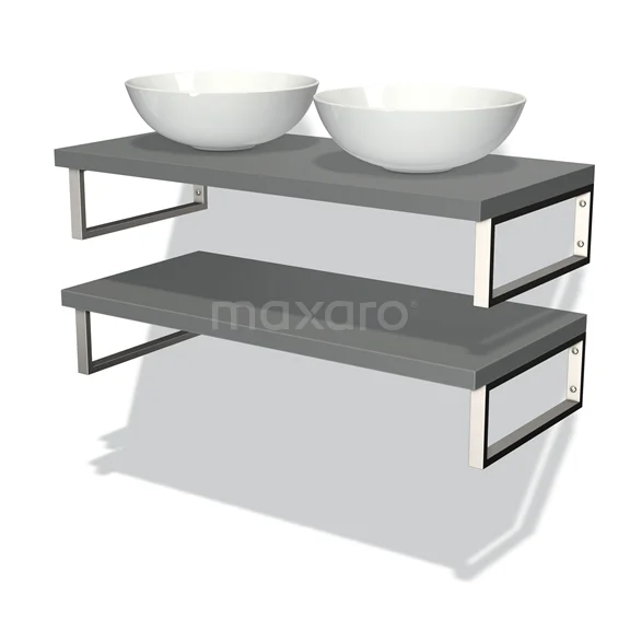 Badmöbel für Waschtischunterschrank mit Konsole 100 cm Modulo Plato Mittelgrau 2 Aufsatzwaschbeckenplatten