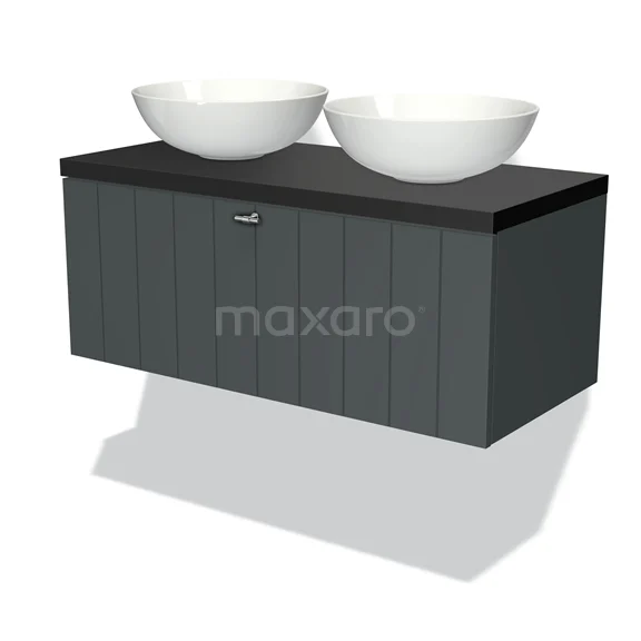 Badmöbel für Waschtischunterschrank mit Konsole 100cm Modulo Plato Dunkelgrau 1 Schublade Lamelle Matt Schwarz Platte