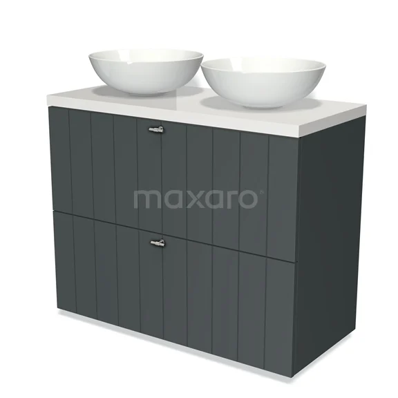 Badmöbel für Waschtischunterschrank mit Konsole 100cm Modulo Plato Dunkelgrau 2 Hoch Schubladen Lamelle Hochglanz Weiß Platte