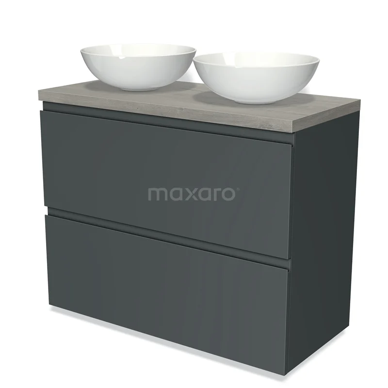 Badmöbel für Waschtischunterschrank mit Konsole 100cm Modulo Plato Dunkelgrau 2 hohe Schubladen Grifflos Graue Eiche Platte