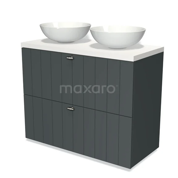 Badmöbel für Waschtischunterschrank mit Konsole 100cm Modulo Plato Dunkelgrau 2 hohe Schubladen Lamelle Dunkelgrau Platte