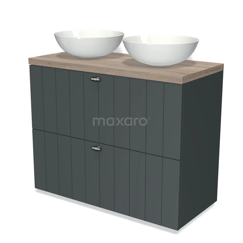 Badmöbel für Waschtischunterschrank mit Konsole 100cm Modulo Plato Dunkelgrau 2 hohe Schubladen Lamelle Eiche Platte