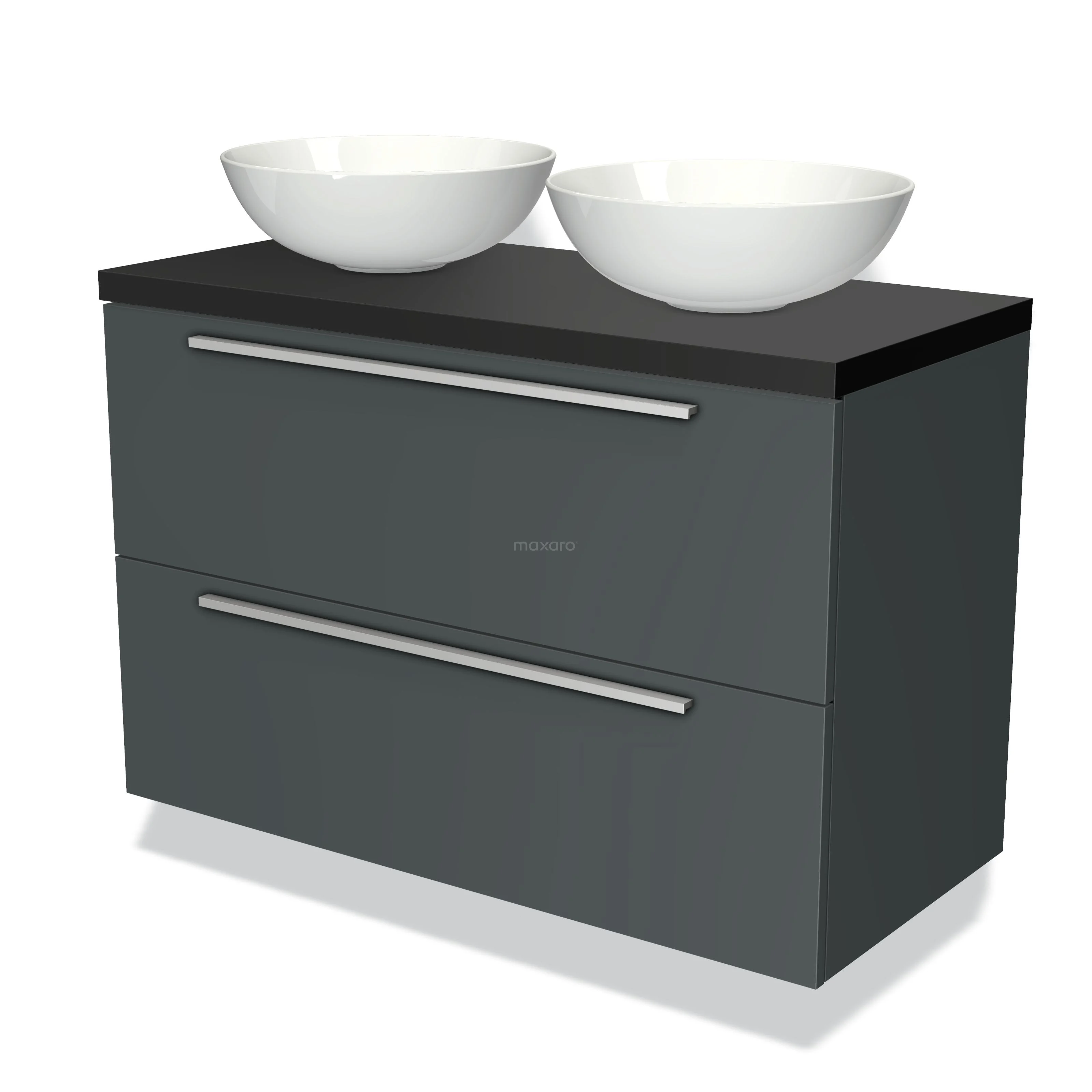 Badmöbel für Waschtischunterschrank mit Konsole 100cm Modulo Plato Dunkelgrau 2 Schubladen Flach Matt Schwarz Platte