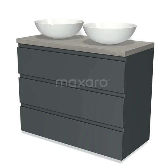 Badmöbel für Waschtischunterschrank mit Konsole 100cm Modulo Plato Dunkelgrau 3 Schubladen Grifflose graue Eiche Platte