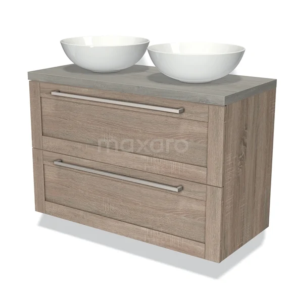 Badmöbel für Waschtischunterschrank mit Konsole 100cm Modulo Plato Eiche 2 Schubladen Rahmen Graue Eiche Platte