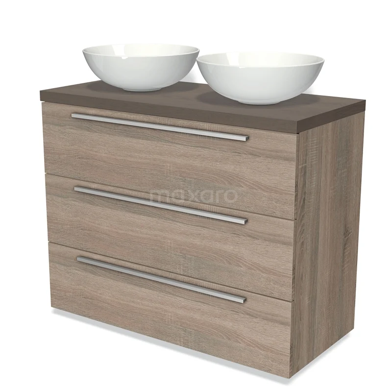 Badmöbel für Waschtischunterschrank mit Konsole 100cm Modulo Plato Eiche 3 Schubladen Flach dunkelbraune Eiche Platte