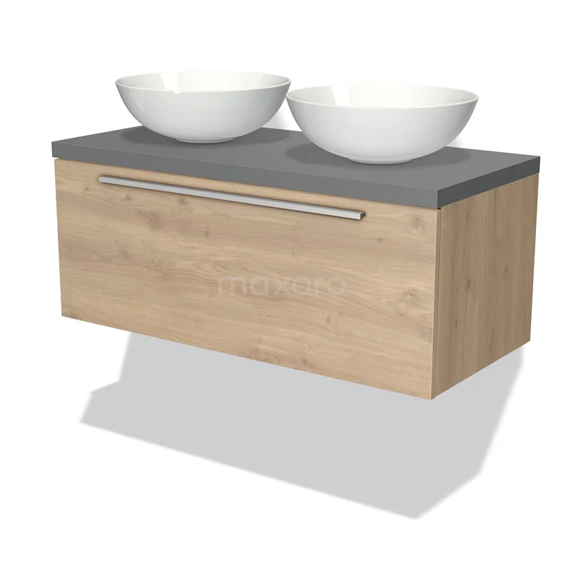 Badmöbel für Waschtischunterschrank mit Konsole 100cm Modulo Plato Hellbraune Eiche 1 Schublade Flach Mittelgrau Platte