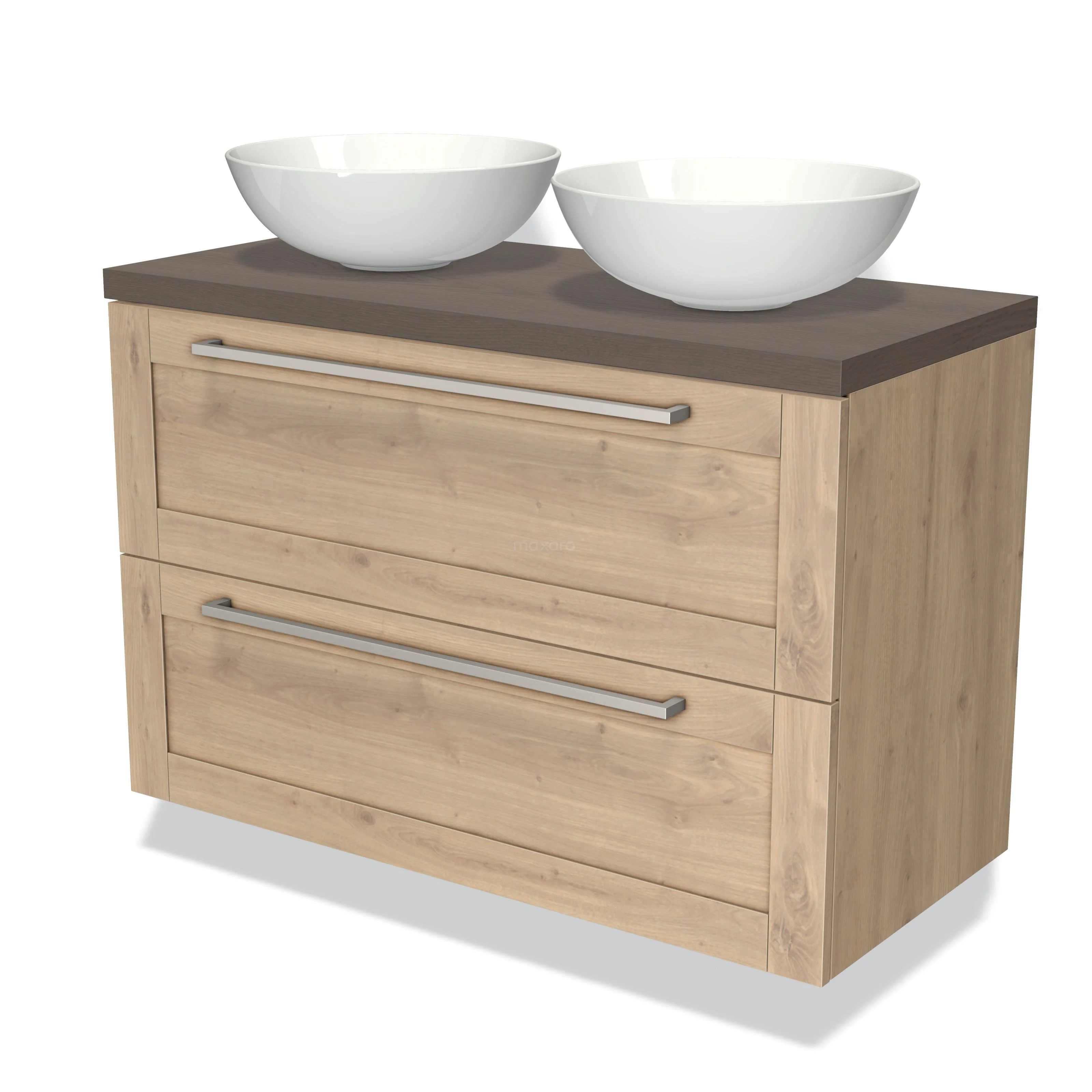 Badmöbel für Waschtischunterschrank mit Konsole 100cm Modulo Plato hellbraune Eiche 2 Schubladen Rahmen dunkelbraune Eiche Platte