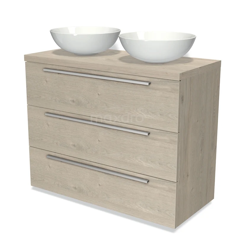 Badmöbel für Waschtischunterschrank mit Konsole 100cm Modulo Plato hellgraue Eiche 3 Schubladen flach
