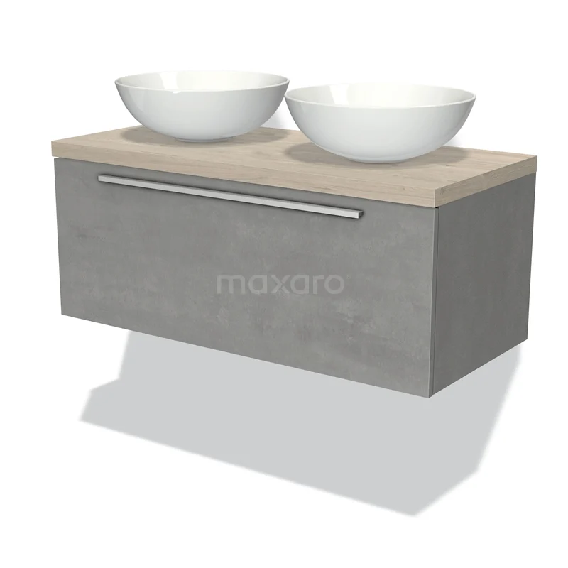 Badmöbel für Waschtischunterschrank mit Konsole 100cm Modulo Plato hellgrauer Beton 1 Schublade Flach hellgraue Eiche Platte