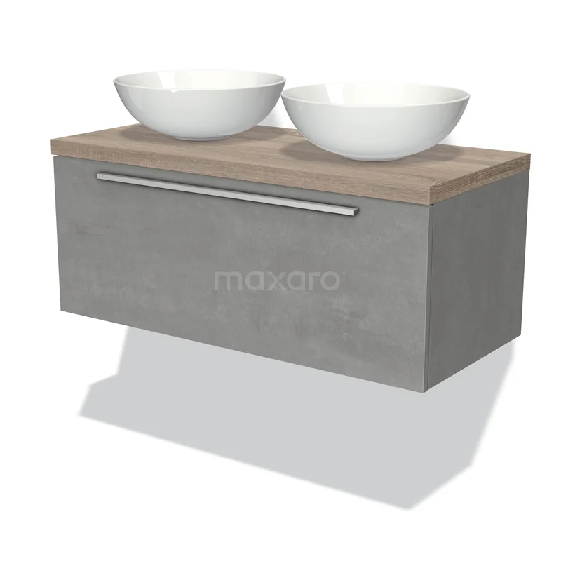 Badmöbel für Waschtischunterschrank mit Konsole 100cm Modulo Plato hellgrauer Beton 1 Schublade flache Platte aus Eiche