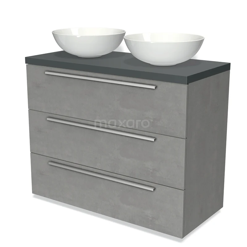 Badmöbel für Waschtischunterschrank mit Konsole 100cm Modulo Plato Hellgrauer Beton 3 Schubladen Flach Dunkelgraue Platte