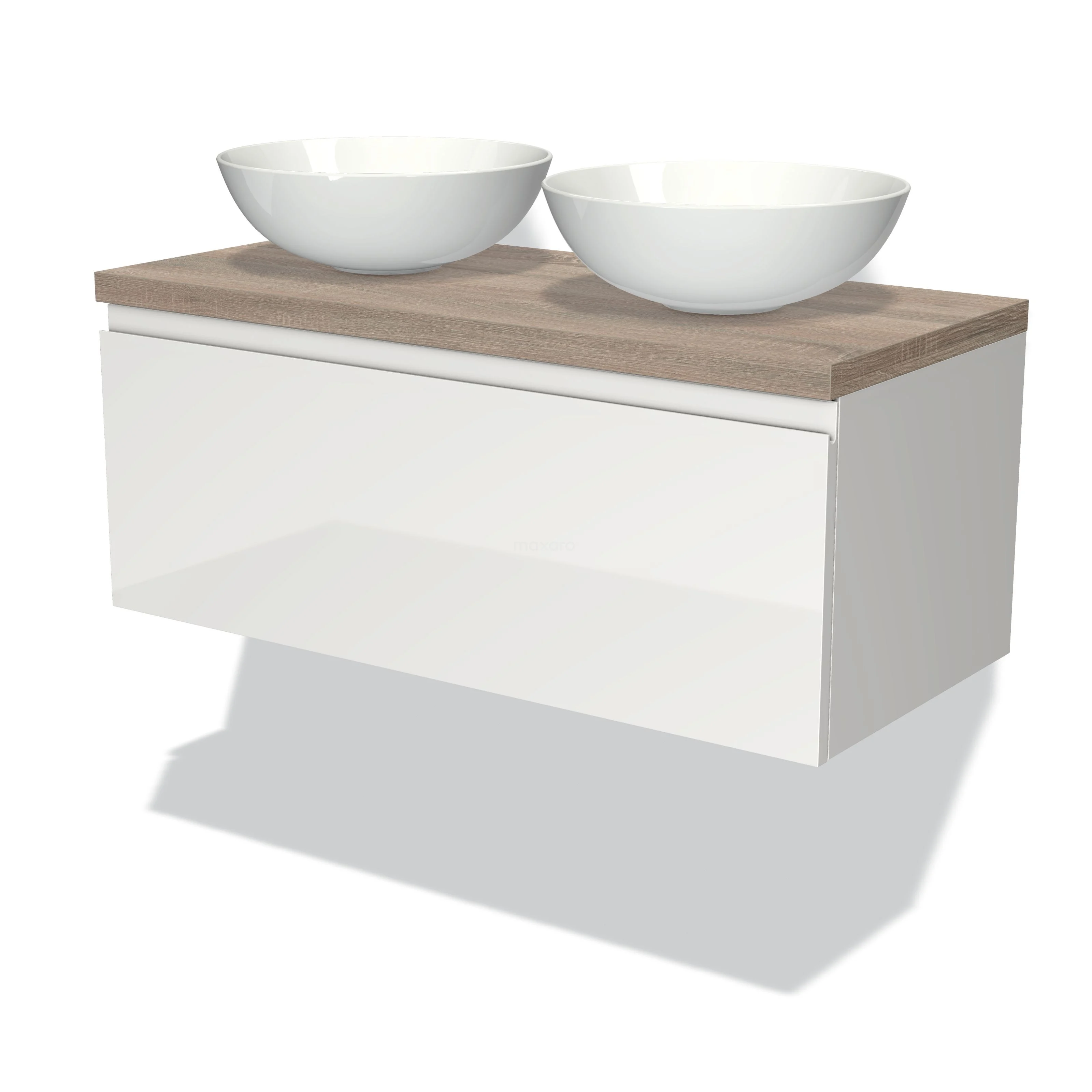 Badmöbel für Waschtischunterschrank mit Konsole 100cm Modulo Plato Hochglanz Weiß 1 Schublade Grifflos Eiche Platte
