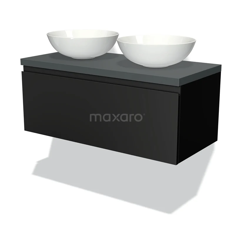 Badmöbel für Waschtischunterschrank mit Konsole 100cm Modulo Plato Matt Schwarz 1 Schublade Grifflos Dunkelgrau Platte