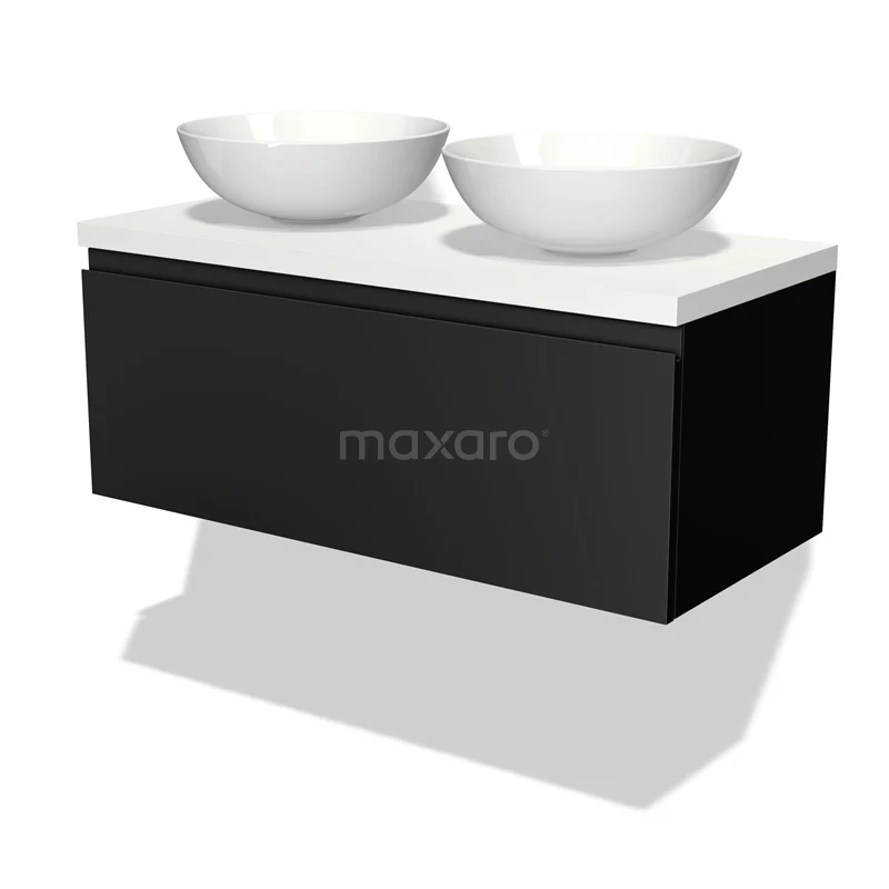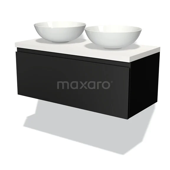 Badmöbel für Waschtischunterschrank mit Konsole 100cm Modulo Plato Matt Schwarz 1 Schublade Grifflos Matt Weiß Platte