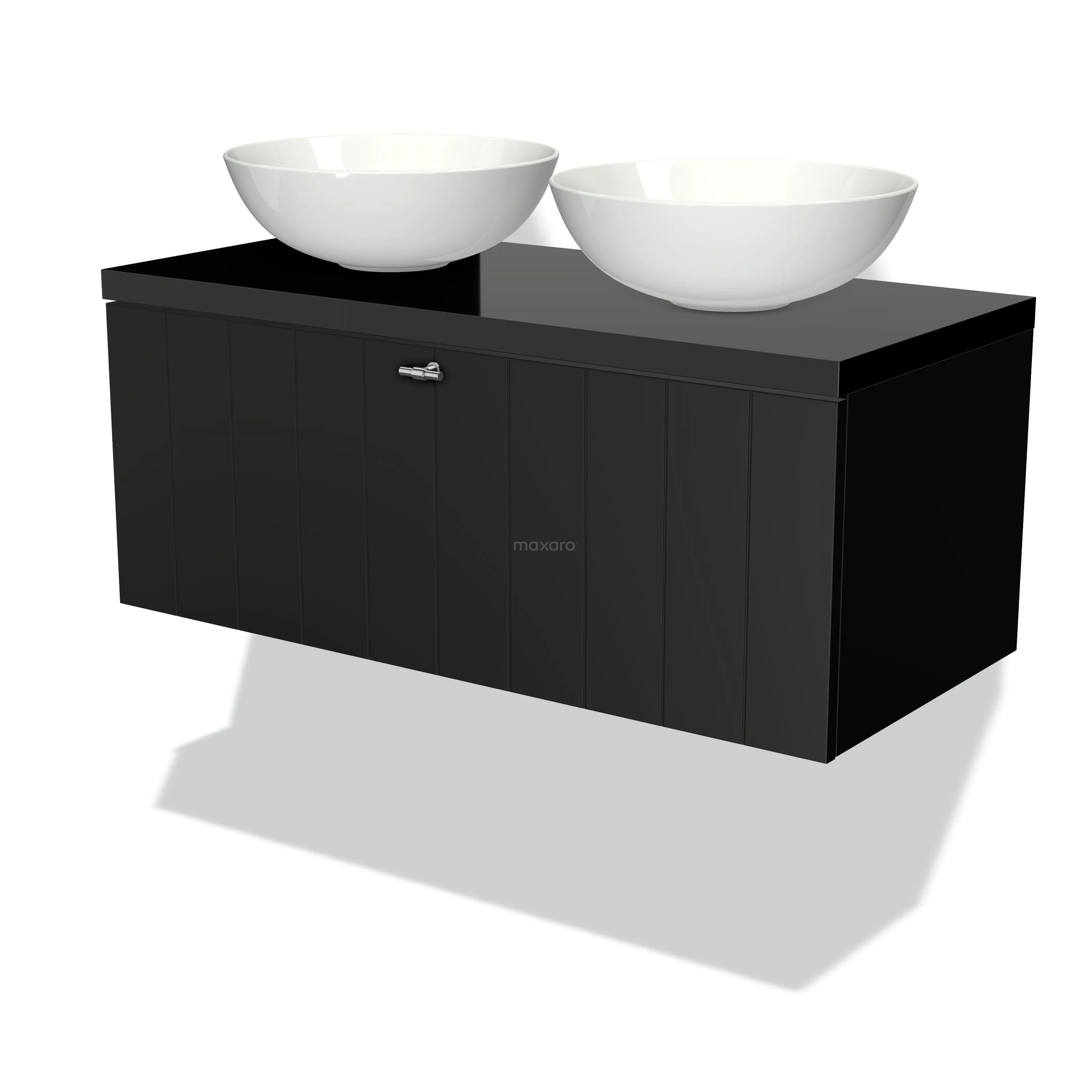 Badmöbel für Waschtischunterschrank mit Konsole 100cm Modulo Plato Matt Schwarz 1 Schublade Lamelle Hochglanz Schwarz Platte