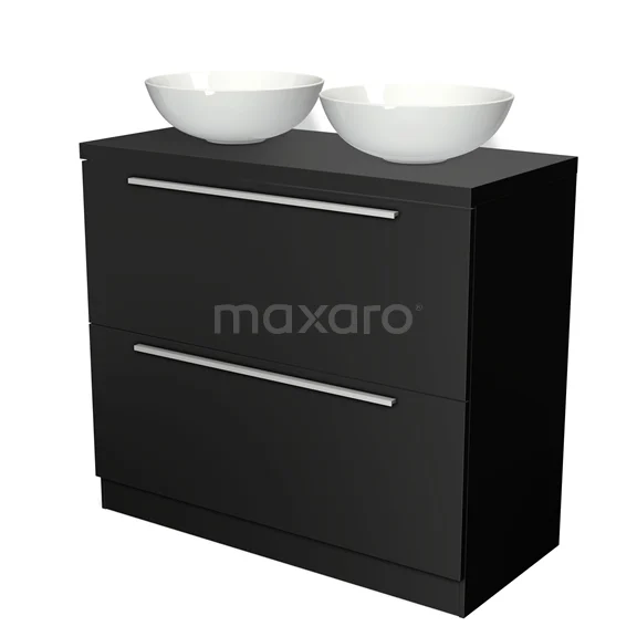 Badmöbel für Waschtischunterschrank mit Konsole 100cm Modulo Plato Matt Schwarz 2 hohe Schubladen Stehend Flach