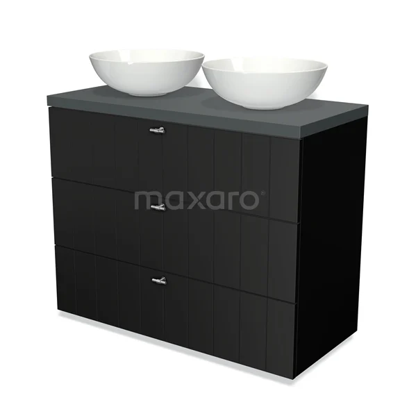 Badmöbel für Waschtischunterschrank mit Konsole 100cm Modulo Plato Matt Schwarz 3 Schubladen Latte Dunkelgrau Platte