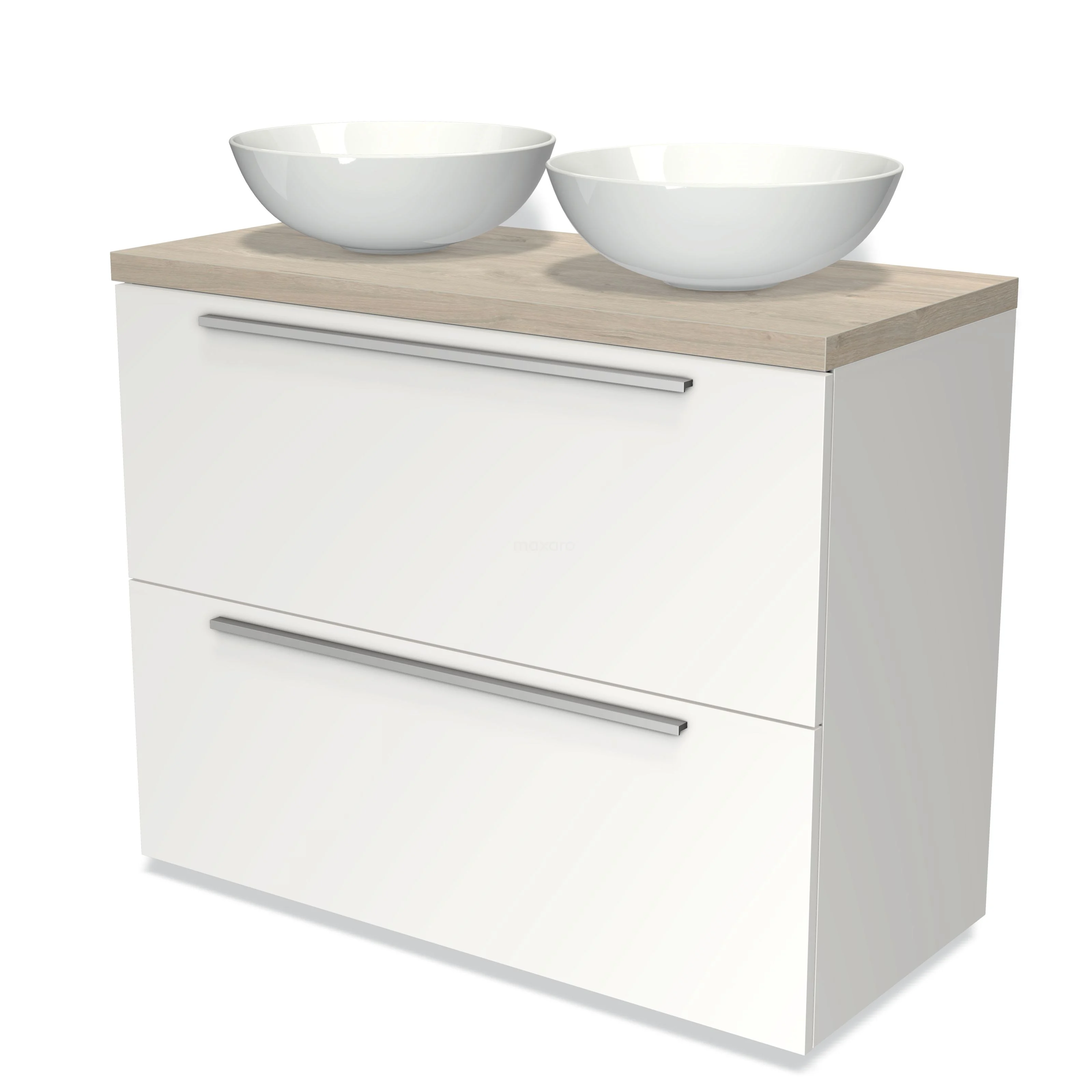 Badmöbel für Waschtischunterschrank mit Konsole 100cm Modulo Plato Matt Weiß 2 hohe Schubladen Flach hellgraue Eiche Platte