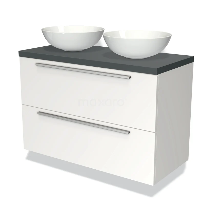 Badmöbel für Waschtischunterschrank mit Konsole 100cm Modulo Plato Matt Weiß 2 Schubladen Flach Dunkelgrau Platte