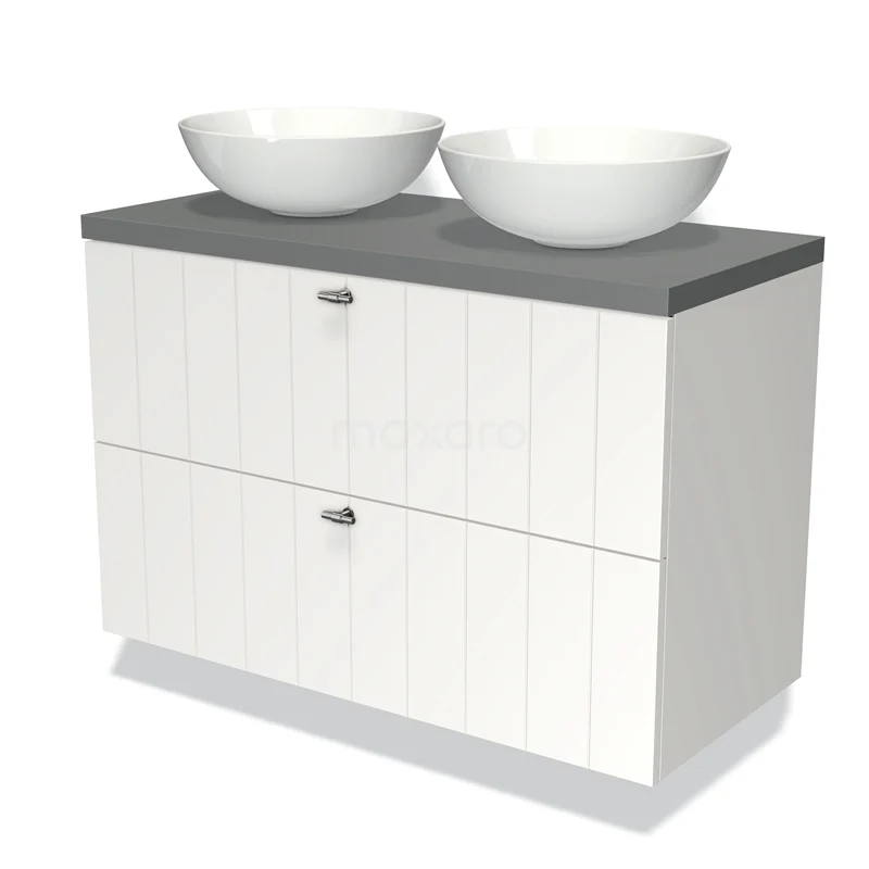 Badmöbel für Waschtischunterschrank mit Konsole 100cm Modulo Plato Matt Weiß 2 Schubladen Latten Mittelgrau Platte