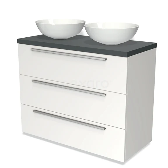 Badmöbel für Waschtischunterschrank mit Konsole 100cm Modulo Plato Matt Weiß 3 Schubladen Flach Dunkelgrau Platte