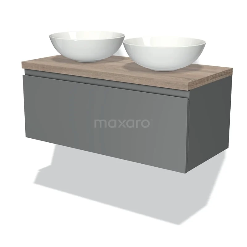Badmöbel für Waschtischunterschrank mit Konsole 100cm Modulo Plato Mittelgrau 1 Schublade grifflos Eiche Platte