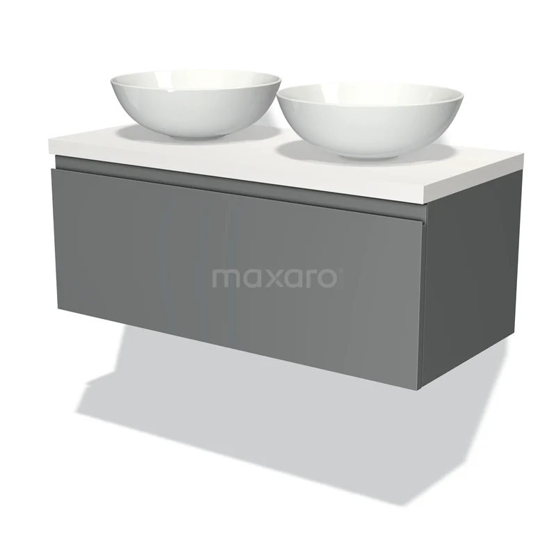 Badmöbel für Waschtischunterschrank mit Konsole 100cm Modulo Plato Mittelgrau 1 Schublade grifflos Matt Weiß Platte