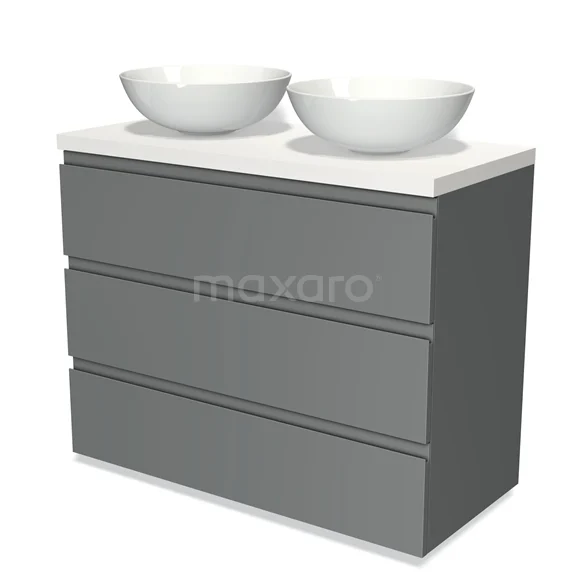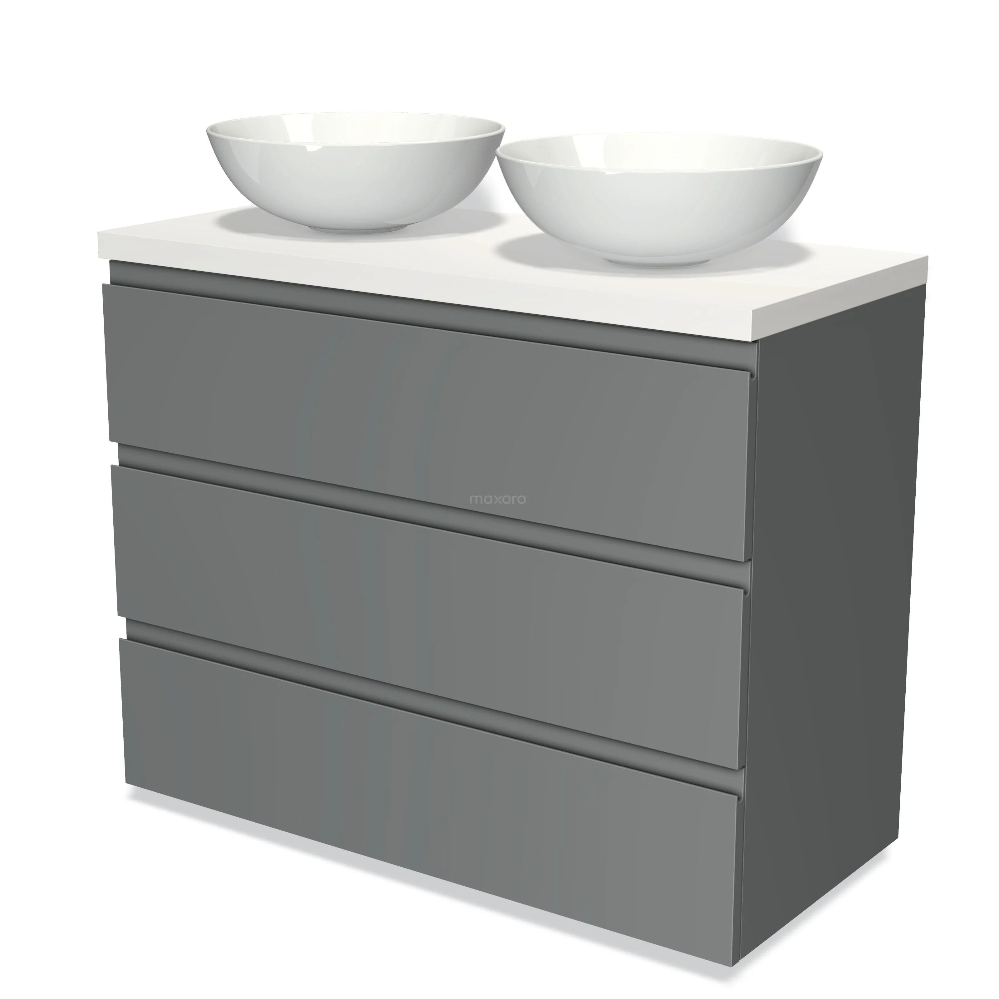 Badmöbel für Waschtischunterschrank mit Konsole 100cm Modulo Plato Mittelgrau 3 Schubladen grifflos Matt Weiß Platte