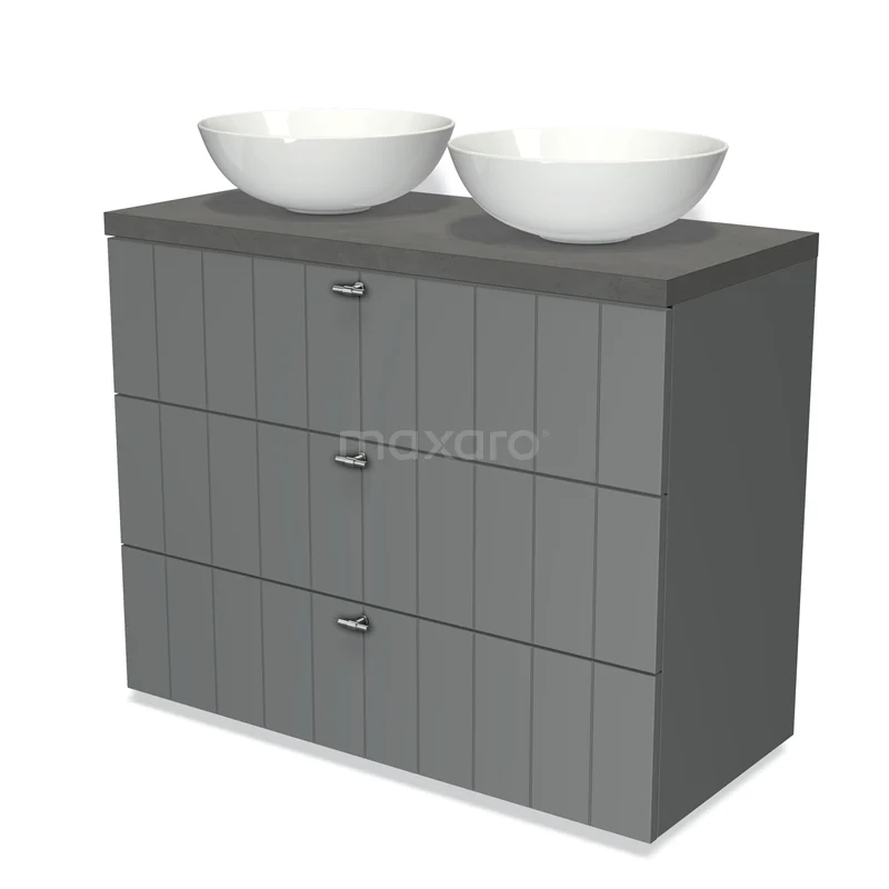 Badmöbel für Waschtischunterschrank mit Konsole 100cm Modulo Plato Mittelgrau 3 Schubladen Lamelle Dunkelgrau Beton Platte