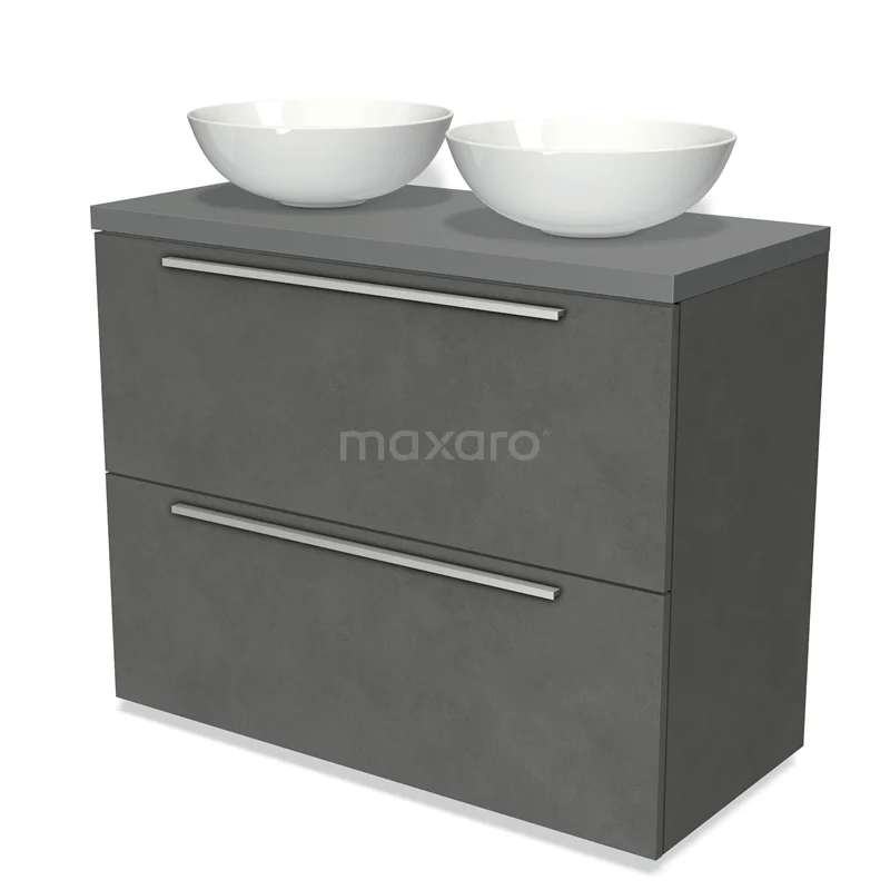 Badmöbel für Waschtischunterschrank mit Konsole 100cm Modulo Platte Dunkelgrau Beton 2 hohe Schubladen Flach Mittelgrau Platte