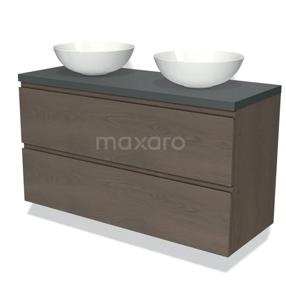 Badmöbel für Waschtischunterschrank mit Konsole 120cm Modulo Plato Dunkelbraune Eiche 2 Schubladen Grifflos Dunkelgrau Platte